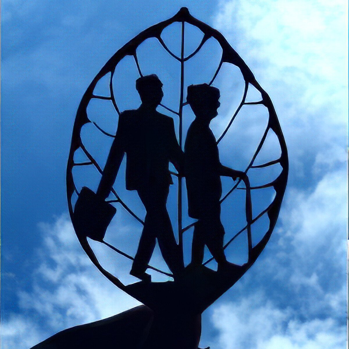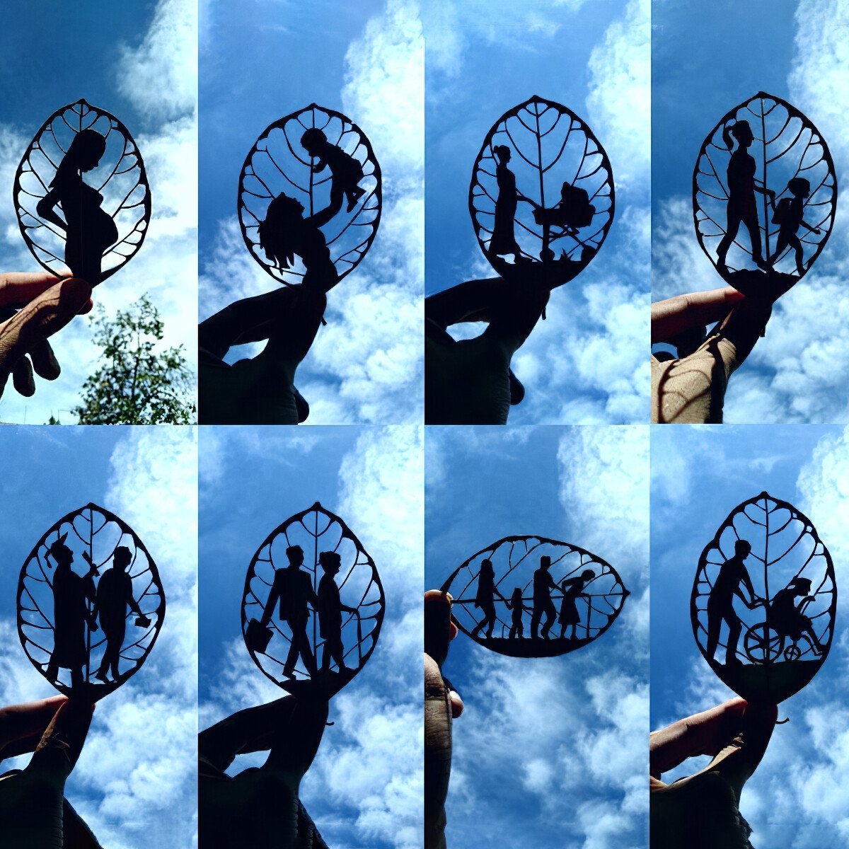A monumental metal engraving. Each metal leaf records the mother at a different time.👍
